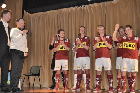 150 var samlet til bords da Valdres FK senior og juniorlag ble presentert for publikum på Fagernes Hotel lørdag kveld. Mato, Terje og «Baja» dro inn 85.000 kroner for klubben.