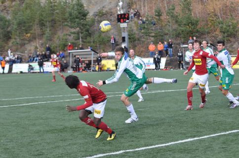 Herlige Ayouba sprang ifra Raufoss-forsvaret og banket inn 2-1 slik at Valdres FK kan kalle seg best i Oppland. Det så en stund mørkt ut...