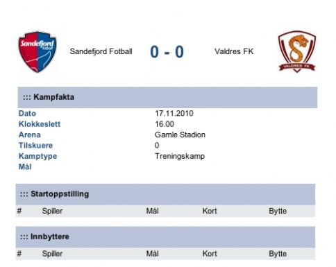 Onsdag 17.november spiller Valdres FK treningskamp borte mot Sandefjord, der nye og gamle spillere får prøve seg.