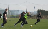 Det regnet hardt natt til fredag, men med litt sol og vind kom det seg utover dagen. To treninger paa ekte gress, falt i smak hos spillerne.