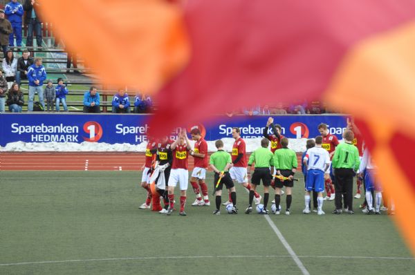 På midtbanen jobbet Fredrik Lagemyr og Vegard Øverlie meget godt sammen. Tempoet gjorde det surt for Brumunddal. Etter 12 minutter fikk Vegard servert ballen og dro seg gjennom forsvaret. Han satte ballen helt i bortre hjørnet til 1-0.